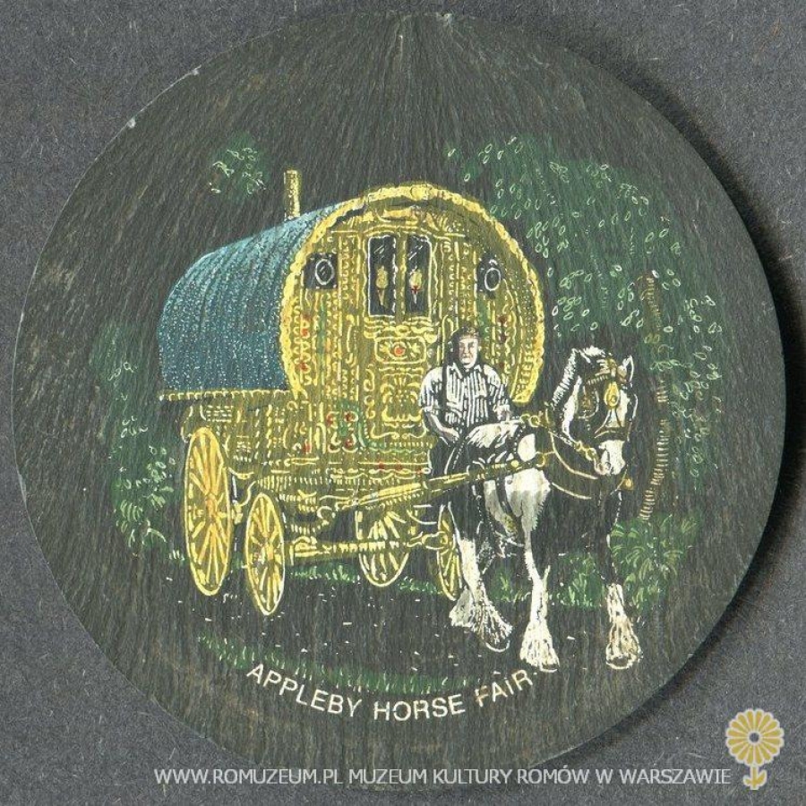 Gypsy wagon (bow top), Appleby Horse Fair, podstawka pod szklankę, kamionka, średnica 9 cm, circa 2000