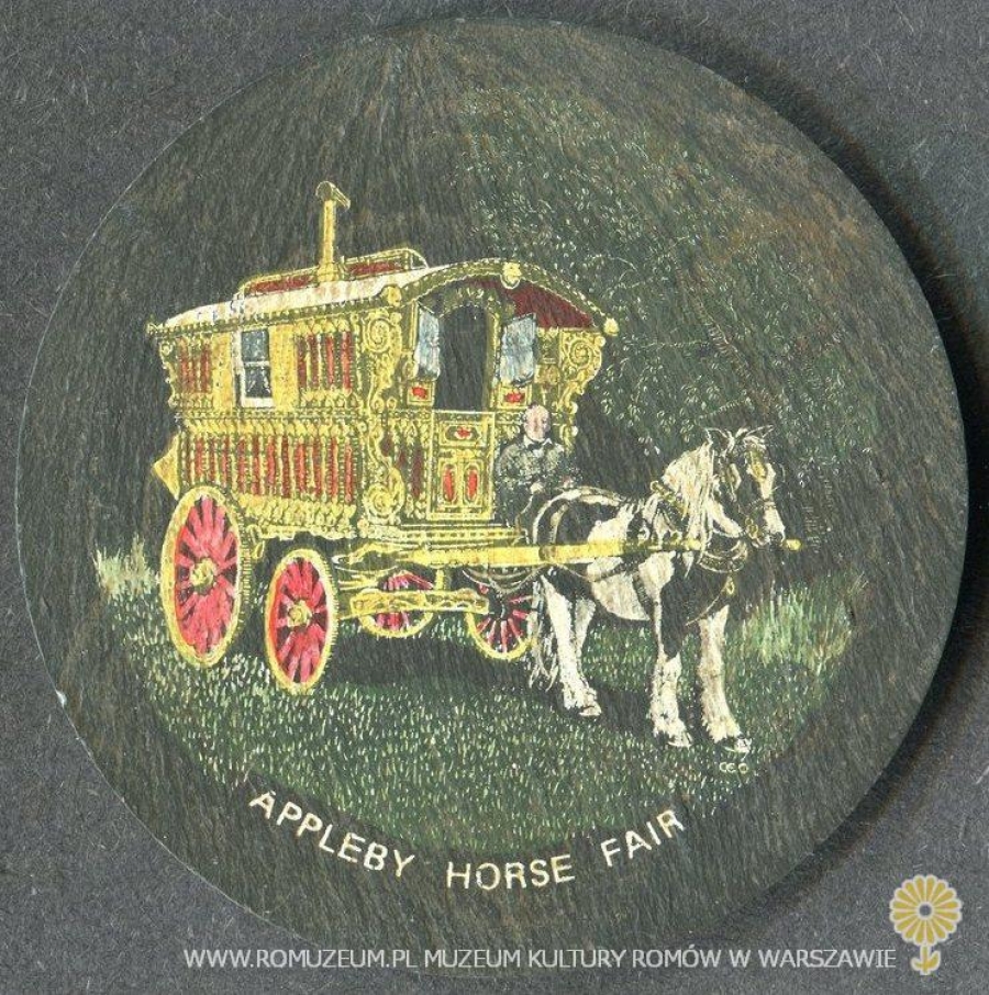 Gypsy wagon (Reading), Appleby Horse Fair, podstawka pod szklankę, kamionka, średnica 9 cm, circa 2000