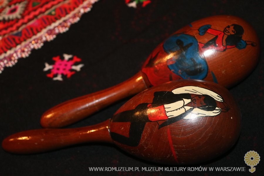 Drewniane marakasy, kalkomania, 7x21,5 cm. Fabryka/manufaktura nieznane