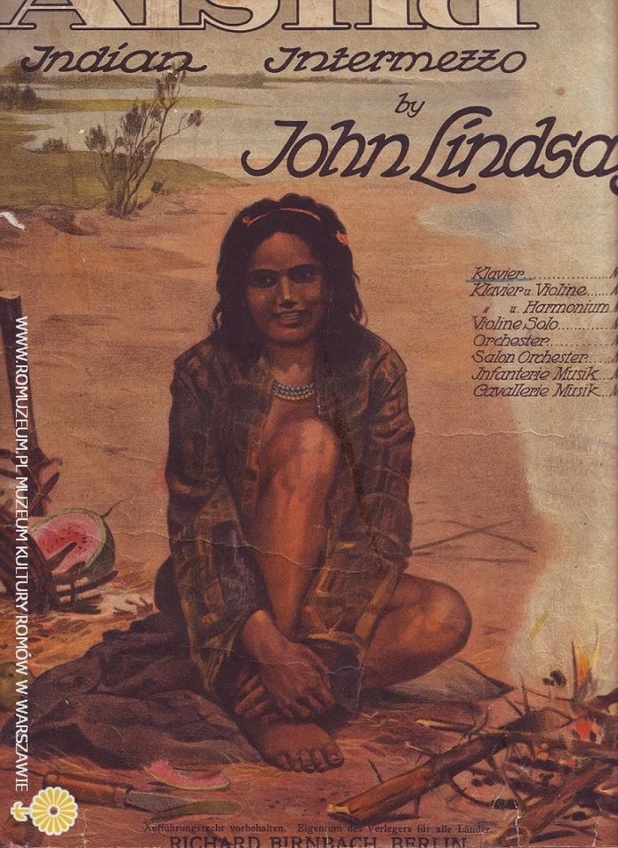 Aisha, Indian Intermezzo by John Lindsay, druk muzyczny, litografia: "Cygańska dziewczyna" Antoni Kozakiewicz (*1841 Kraków – †1929 Kraków), edit Richard Birnbach, Berlin, circa 1910