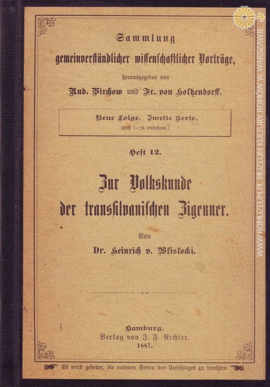 454 Wislocki von Heinrich, Zur Volkskunde der transsilvanischen Zigeuner, s. 40, Verlag von J. F. Richter, Hamburg 1887