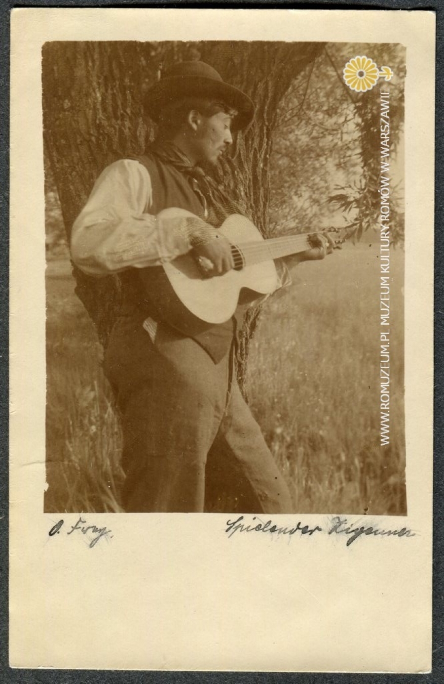 Spielender Zigeuner, autor zdjęcia nieznany, fotografia na papierze pocztówkowym, 8,5x13,5 cm Polska, circa 1920