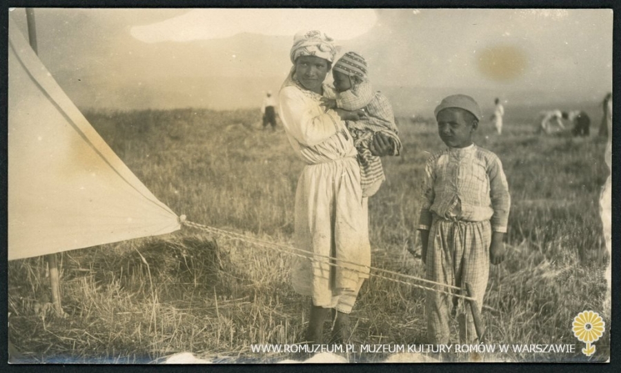 Rodzeństwo koło namiotu, Grecja, autor nieznany, fotografia na papierze, 6,2 x 10,4 cm, circa 1915