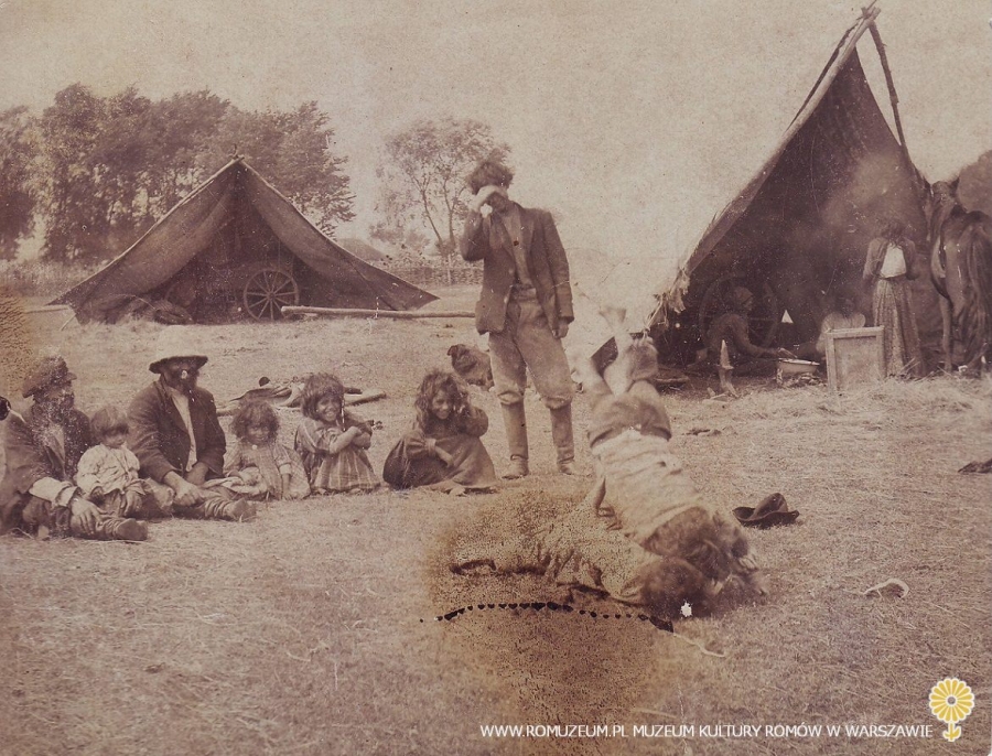 Obozowisko, tabor wędrownych Romów nad brzegiem rzeki Trubeży, Ukraina