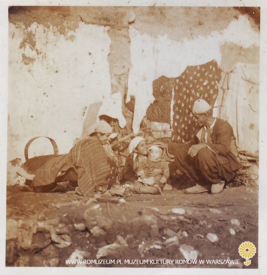 Rodzina przed domem, prawdopodobnie Jugosławia-Kosowo