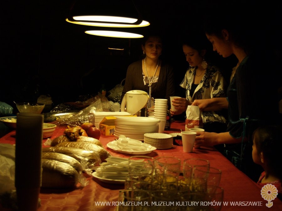 Przygotowanie stołu, Malina, Dżesika, Gaga (Polska Roma, Węgierki), Olsztyn, 2012 r. Fot. Andrzej Grzymała-Kazłowski