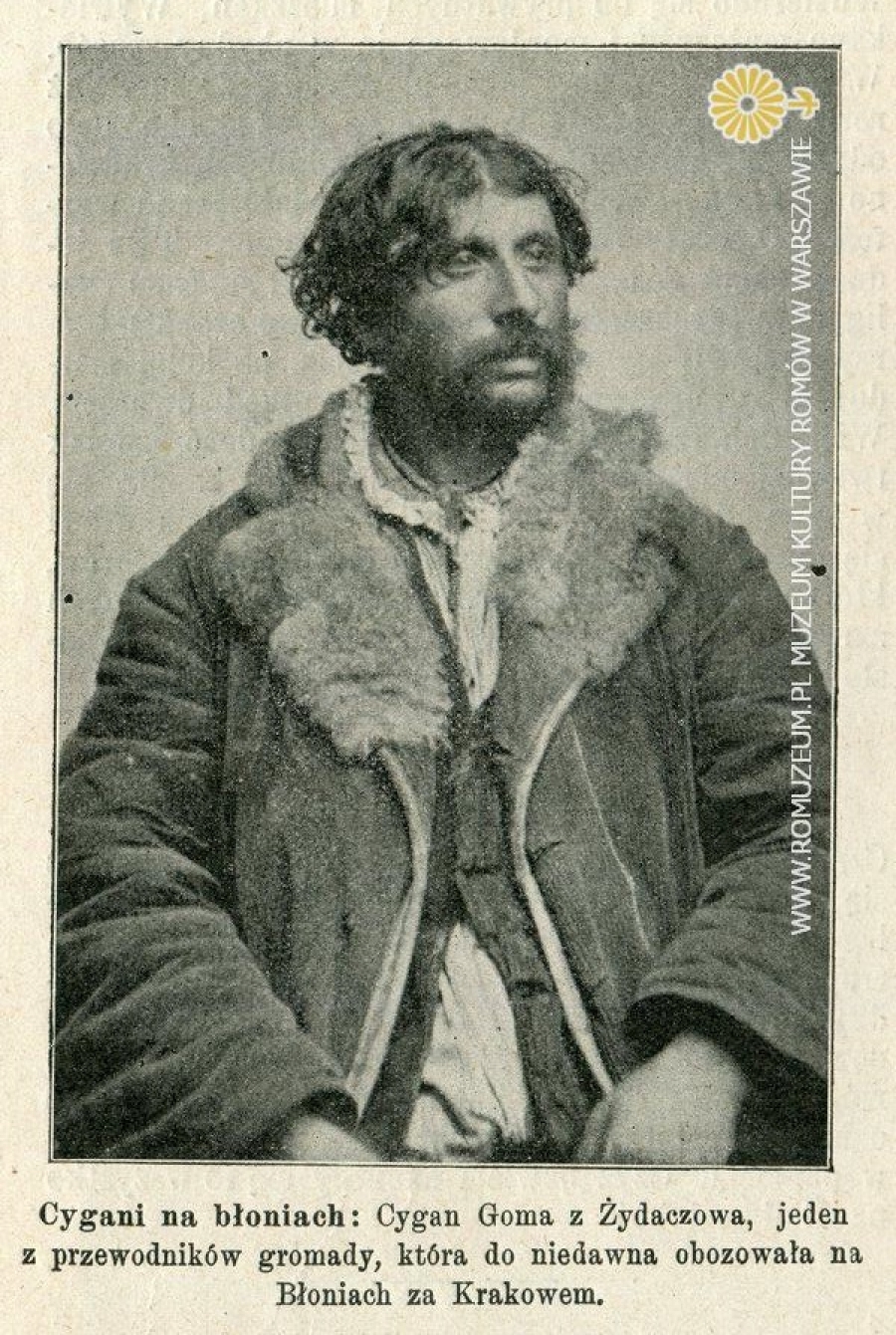 Cygani na błoniach: Cygan Goman z Żydaczowa, jeden z przewodników gromady, która do niedawna obozowała na Błoniach w Krakowie, "Nowości Ilustrowane" Nr 25, Kraków, 23 VI 1906