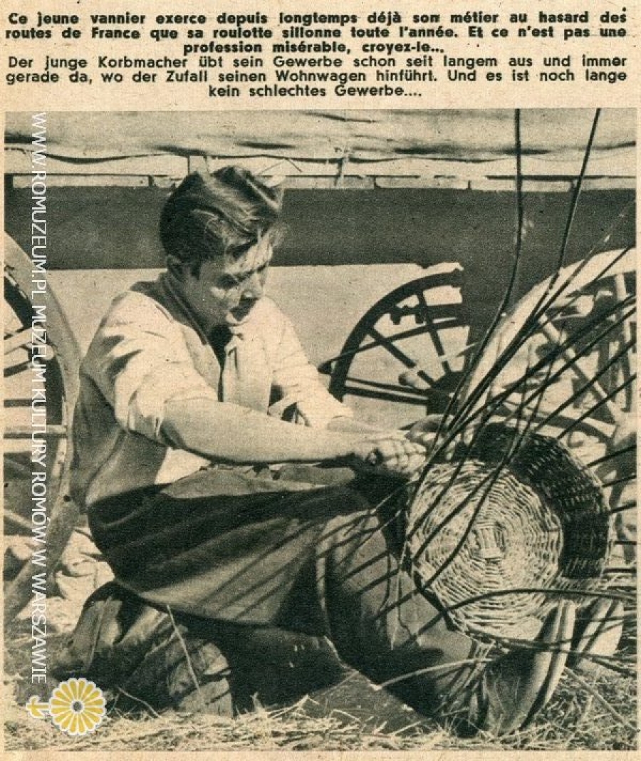 Gens de La Route, młody wytwórca koszy, fotografia towarzyszy artykułowi Javarzay`ego w: "Cigognes - Grande Revue Illustrée de La Famille" Nr 17, 27 IV 1947