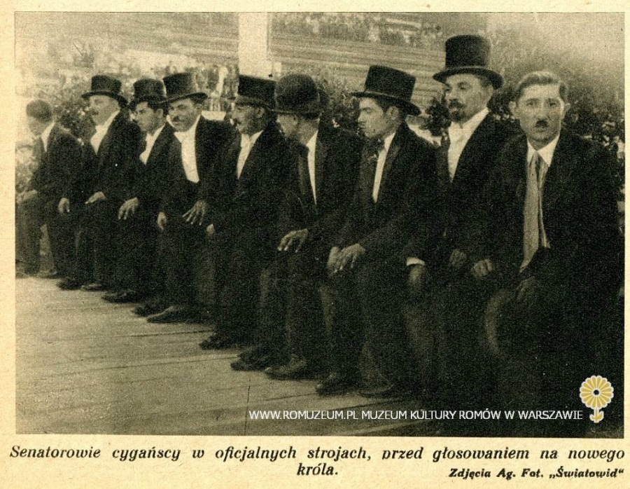 Senatorowie cygańscy w oficjalnych strojach, Elekcja Króla Cygańskiego w Warszawie, fot. Ag. Fot. "Światowid", "Światowid" Nr 28 [674], 10 VII 1937