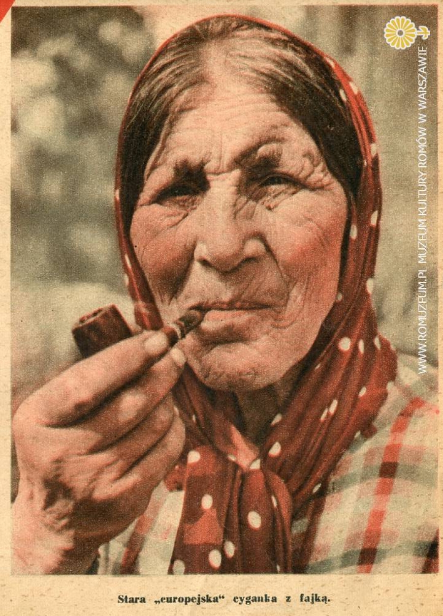 Stara "europejska" cyganka z fajką, Wieczni tułacze, "Na szerokim Świecie" Nr 26-511, 26 VI 1938