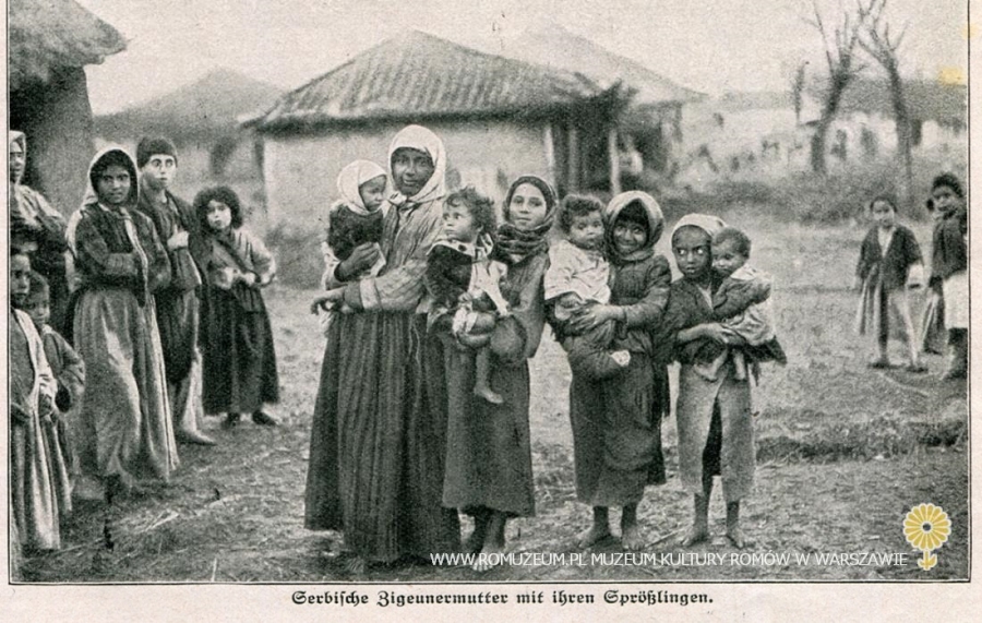 Serbische Zigeunermutter mit ihren Sprösslingen, Matka z potomstwem., pojedyncze zdjęcie z prasy w języku niemieckim, circa 1915
