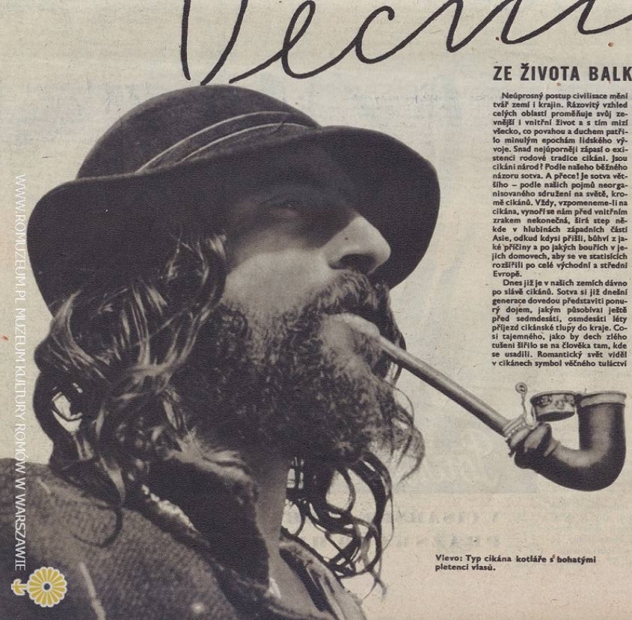 Typ Cygana kotlarza z gęstymi splotami włosów, Većni tulaći, ze żivota balkanskych cikanu, nomadu, "Spravodaj Prażsky Ilustrovany", fot. Jaroslav Pacovský, 10 X 1940