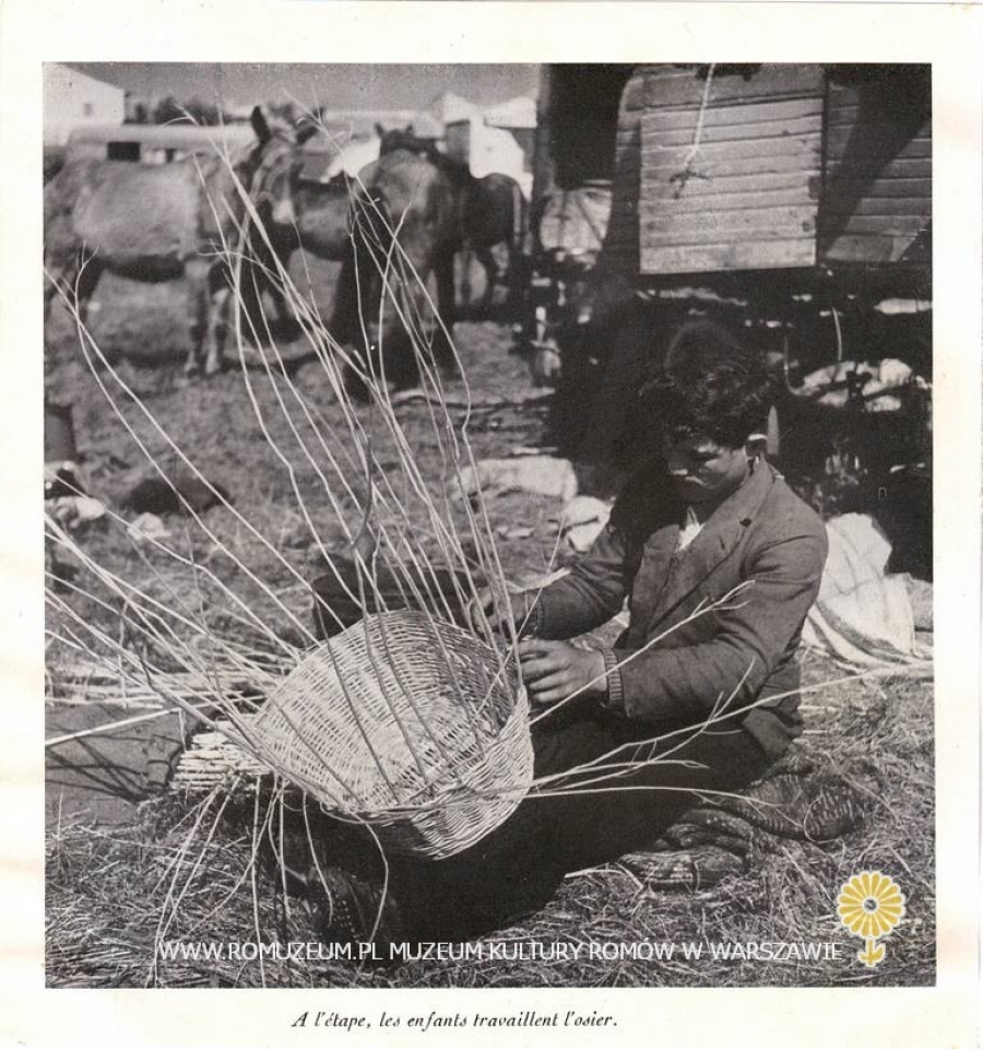 Wytwórca koszy, Le Bohémien, fotografia z nieznanego czasopisma francuskiego, circa 1945