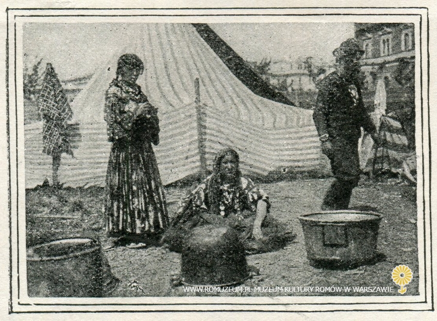 Gli a Zingari Roma. Una tribu do zingari della Polonia russa accampata nei pressi di Castel Sant` Angelo. Cyganie w Rzymie. Plemię cygańskie z rosyjskiej Polski obozowało w pobliżu Castel Sant`Angelo. Matrona, Karta z nieznanego włoskiego periodyku, circa 1905