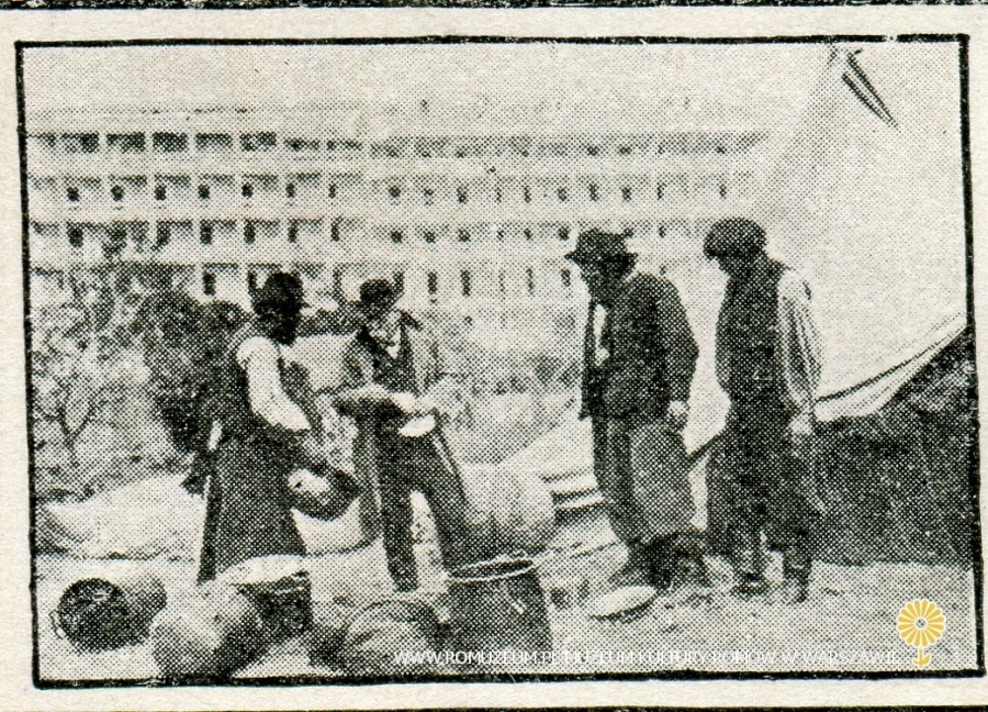 Gli a Zingari Roma. Una tribu do zingari della Polonia russa accampata nei pressi di Castel Sant` Angelo. Cyganie w Rzymie. Plemię cygańskie z rosyjskiej Polski obozowało w pobliżu Castel Sant`Angelo. Negocjacje, Karta z nieznanego włoskiego periodyku, circa 1905