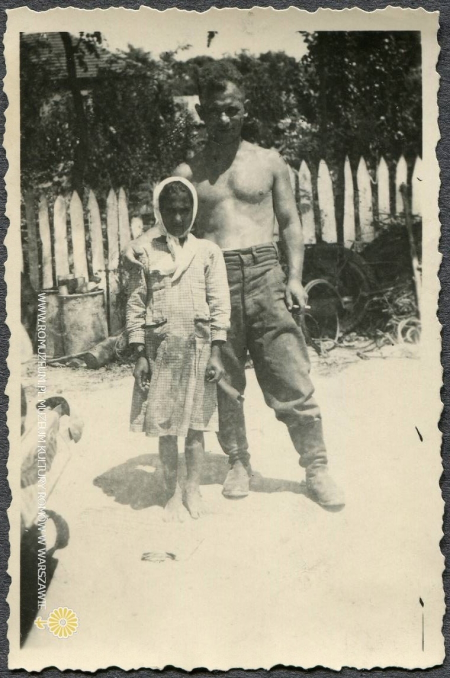 Mała Cyganka z sierżantem Peterem, autor zdjęcia nieznany (żołnierz Wehrmachtu), rewers - odręczny opis: Kleine Zigeunerin mit Sr. Peter, Zilirteanea, Rumunia, 11 VII 1941