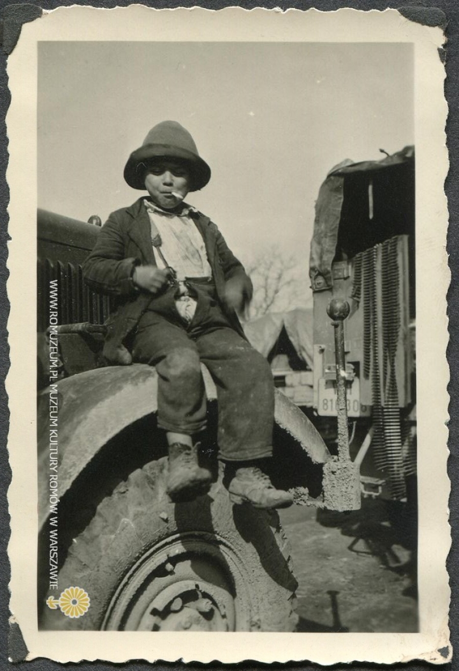 Chłopiec na błotniku ciężarówki Eiheits-Diesel Kfz 63, autor zdjęcia nieznany (żołnierz Wehrmachtu), Bałkany, circa 1942
