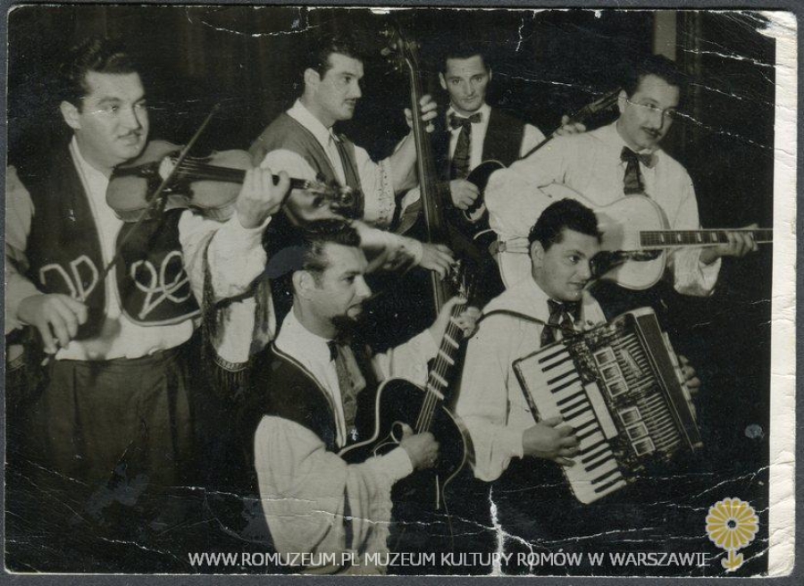 Romski zespół estradowy (prawdopodobnie Romowie z grupy Sinti oraz Lowara), autor nieznany, fotografia (promocyjna) na papierze, Śląsk, circa 1950