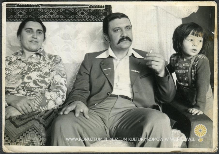 Archiwum rodzinne, rodzice z dziećmi (prawdopodobnie Romowie z grupy Sinti), autor nieznany, fotografia na papierze, Polska-Śląsk, circa 1970