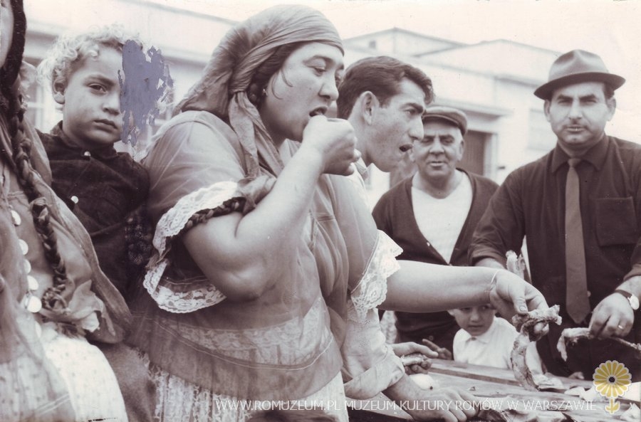 Stół, posiłek (Kełderasze). Autor (fotograf agencyjny) oraz miejsce (Hiszpania, Stany Zjednoczone?) nieznane, zdjęcie opisane: Gitanas, may 1965.