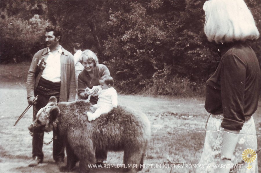 Niedźwiednik z niedźwiedziem wśród wczasowiczów. Autor zdjęcia i miejsce nieznane, Bułgaria circa 1975 r.