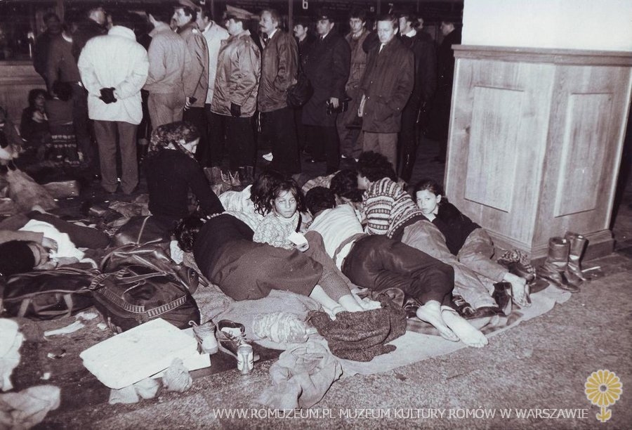 Rumuńscy emigranci na Dworcu Głównym w Krakowie. Fotografie i odbitki wykonał (zaprzyjaźniony z fotografowanymi Romami) kolejarz na prośbę komendanta SOK w Krakowie, najpewniej jesień-zima 1990 r.