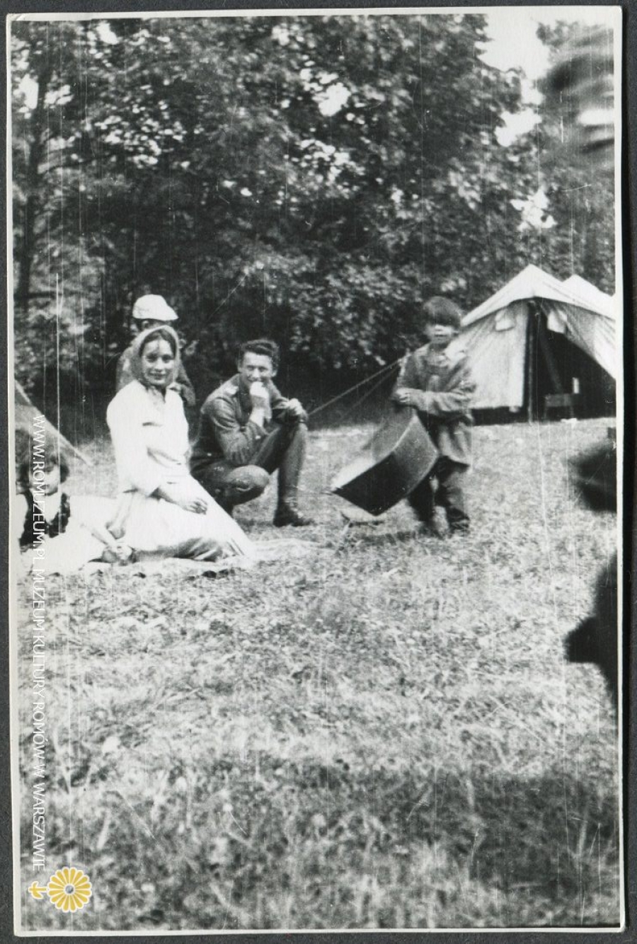 Na polanie, rodzina (Polska Roma) - spotkanie z żołnierzem, autor zdjęcia nieznany, circa 1960
