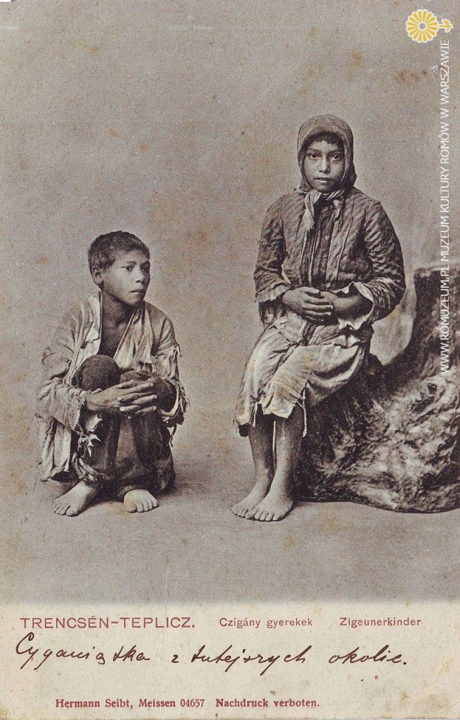Cygańskie dzieci z Trenczyna-Cieplice, Trencsén-Teplicz Czigány gyerekek, edit. Hermann Seibt, Meissen 04657, wydana przed 1905, obieg VIII 1908