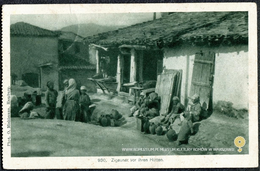 Cyganie przed domem (Macedonia), Zigeuner von ihren Hutten. 930, Phot. O. Miehlmann, Hamburg, obieg Feldpost 13 V 1917