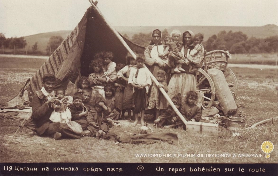 Odpoczynek Cyganów, w drodze, Циганин на почивка cpѣдЪ пътя, Un repos bohémien sur route, Nr 119, edit. Gr. Paskoff-Sofia (Bulgaria), obieg 1929