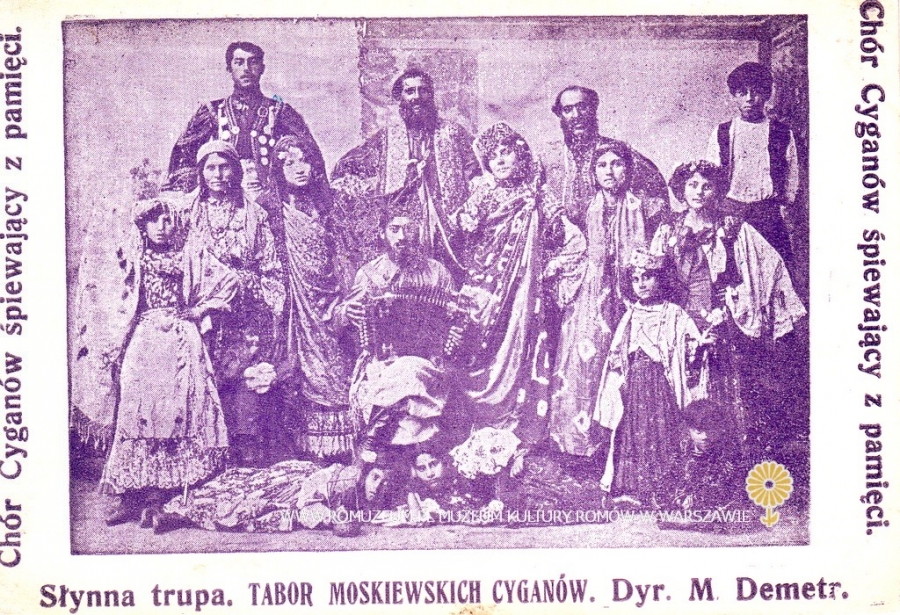 Chór Cyganów śpiewający z pamięci. Słynna trupa. TABOR MOSKIEWSKICH CYGANÓW. Dyr. M. Demeter, karta pocztowa, wydawca nieznany, bez obiegu, przed 1905