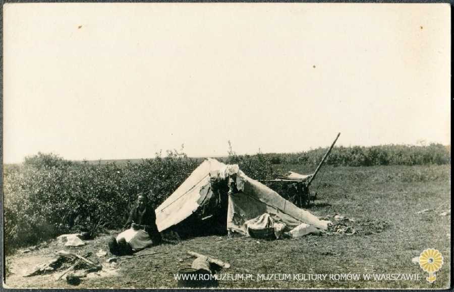 Kobieta przed namiotem, (prawdopodobnie Bułgaria lub Rumunia), karta pocztowa, wydawca nieznany, bez obiegu, circa 1915