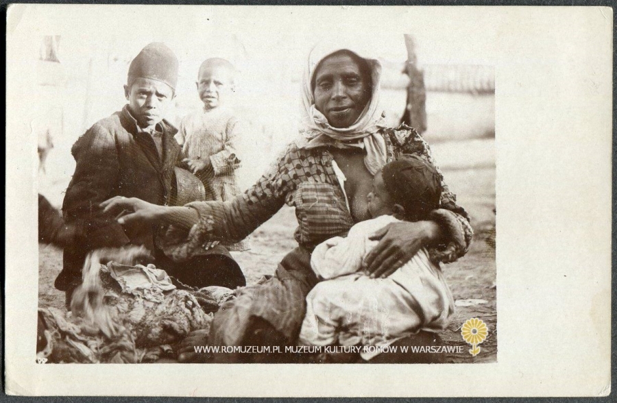 Matka z dziećmi (prawdopodobnie Serbia), Cellofix - Postkarte, D. R. P. Nr. 176323, bez obiegu, circa 1915