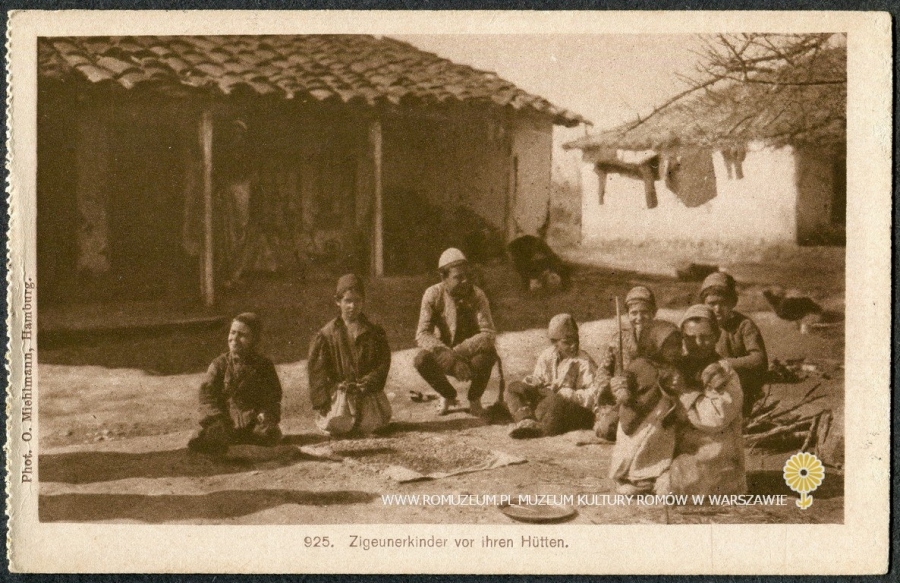 Zigeunerkinder vor ihren Hütten [dzieci romskie przed swoim domem], Macedonia/Serbia, Nr 925, Phot. O. Miehlmann, Hamburg, Verlag für allgemeines Wissen, Berlin W. 9, bez obiegu circa 1915