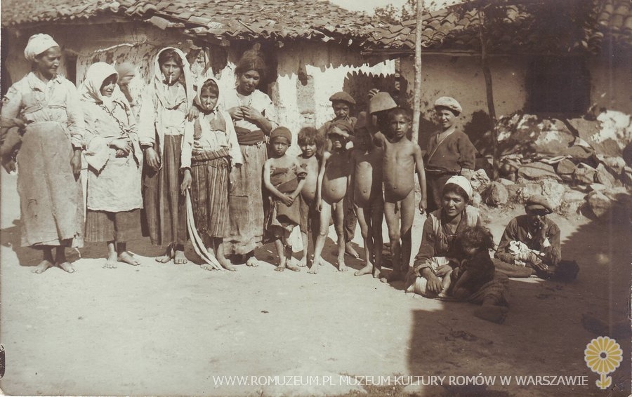 Zigeunergruppe in Vranja/Serbien (obecnie Chorwacja). Photogr. u. verl. v. Arthur Herter, Stuttgar-Gbg., Pfarrstr. 62. (W.L.-I.-B. XIII-19, 3. Komp.) bez obiegu circa 1915 r.