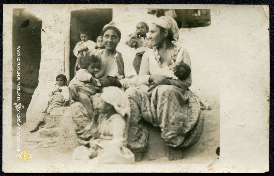 Młode matki, fotografia na karcie pocztowej, próbne odbicie stempla bułgarskiej poczty polowej, Macedonia circa 1915