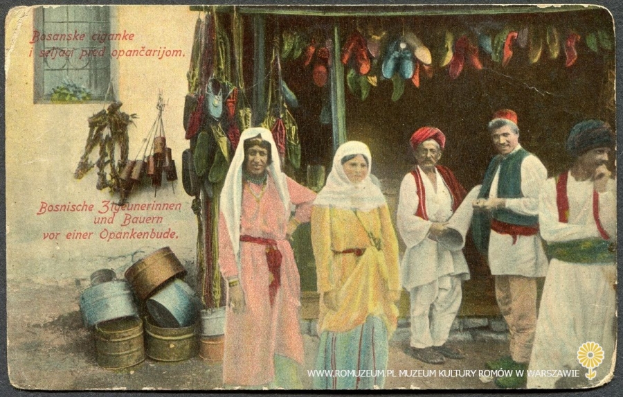 Bosanske ciganke i seljari pred oapnčarijom, karta pocztowa, bez obiegu, circa 1915