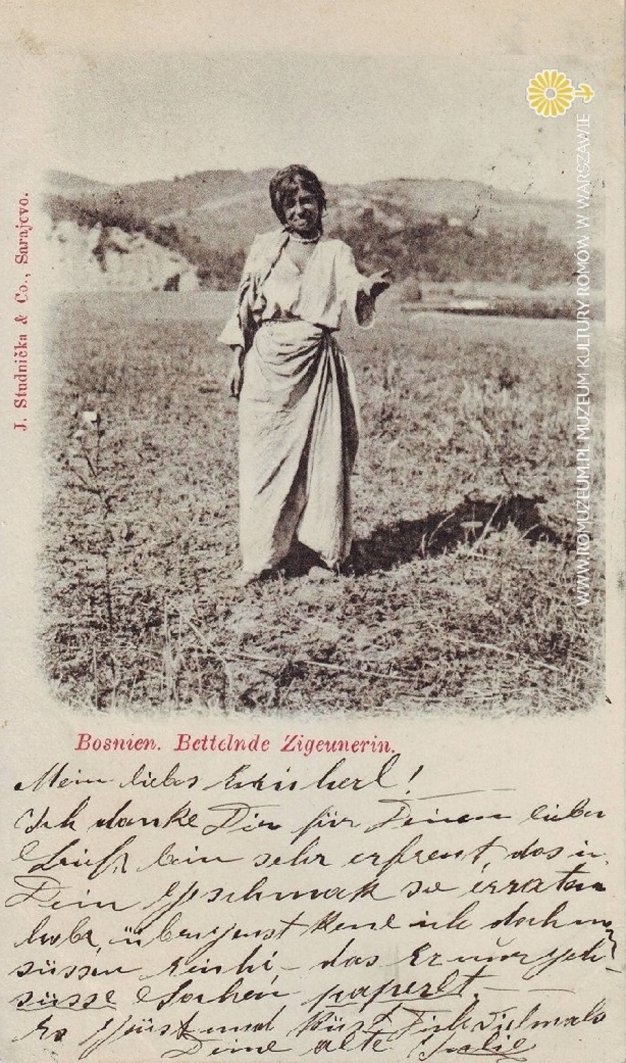 Bośnia, młoda dziewczyna, Bosnien. Bettelnde Zigeunerin, edit. J. Studnička & Co., Sarajevo. obieg 21 I 1904