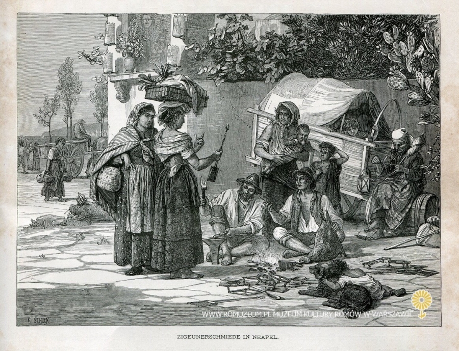 Cygańska kuźnia w Neapolu. Zigeunerschmiede in Neapel, rys. R. Schlck, pojedyncza karta z czasopisma w języku niemieckim, circa 1870