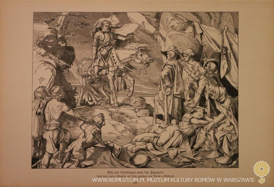 Götz von Berlichingen unter den Zigeunern. Nach dem eigenen Gemälde auf holz gezeichnet von Moritz v. Becherath. Pojedyncza karta „z teki”, circa 1880 r. Druk na papierze kredowym, stan dobry.