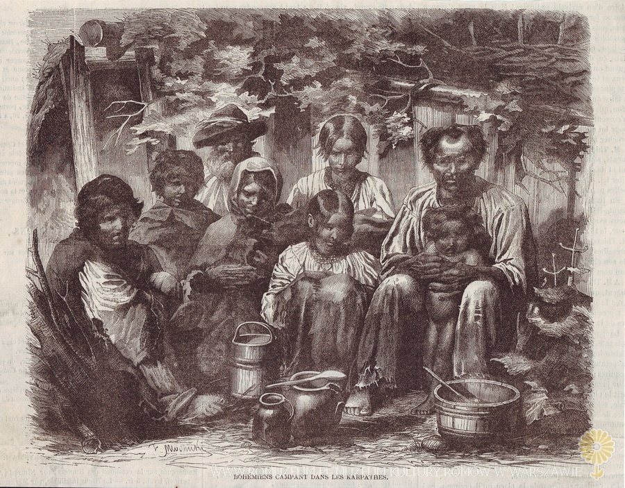 Bohemiens Campant Dans Les Karpathes, nieznany periodyk w języku francuskim, 1862 r. Druk na papierze gazetowym, stan dobry.