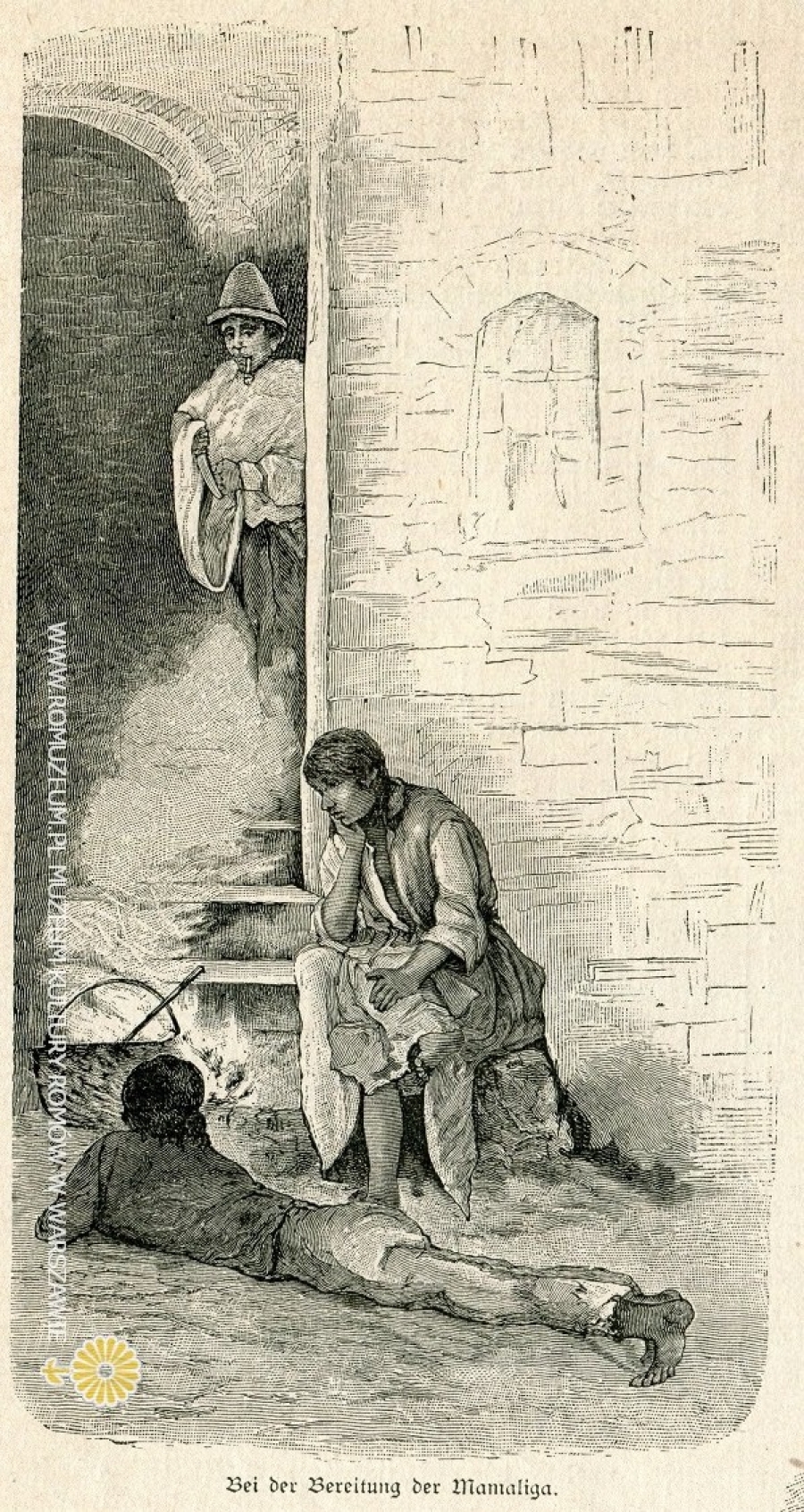 In Rumänien. Bei der Bereitung der Mamaliga, Gotowanie mamłygi, grafice towarzyszy tekst poświęcony Romom w Rumunii, w: Ueber Land und Meer, Allgemeine Auftritte Zeitung, (pojedyncza karta), circa 1880