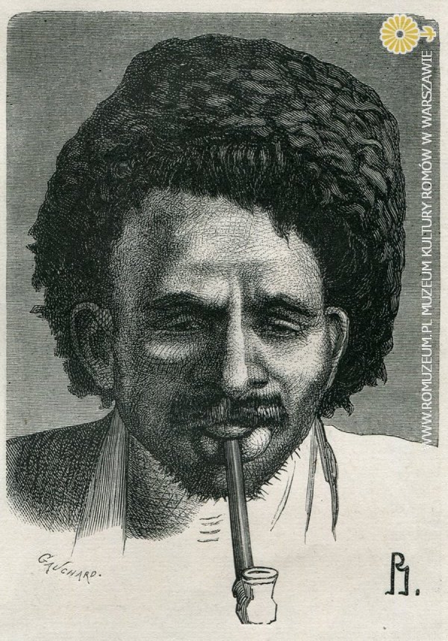 Le tour du Monde, Bohémiens, portret mężczyzny z Kakukazu, drzeworyt wg rysunku Gauchard, 8 x 10 cm, pojedyncza karta z nieznanego francuskiego periodyku, 1868