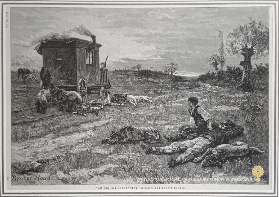 Halt auf der Wanderung [postój], Pierre Auguste Brunet-Houard (*7 II 1827 Saint-Maixent-l'École Décès - †10 I 1922 Fontainebleau), 25,5x34 cm, pojedyncza karta z niemieckiego tygodnika ilustrowanego "Deutsche Illustrirte Zeitung", nr 59 1888
