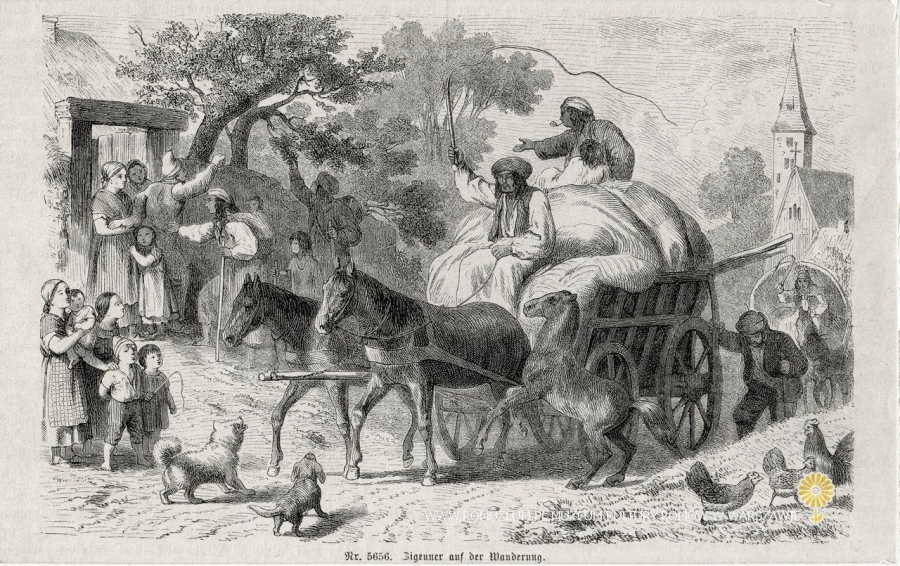 Zigeuner auf der Wanderung [w wędrówce], 11x17 cm, pojedyncza karta z nieznanego niemieckiego magazynu ilustrowanego, circa 1870