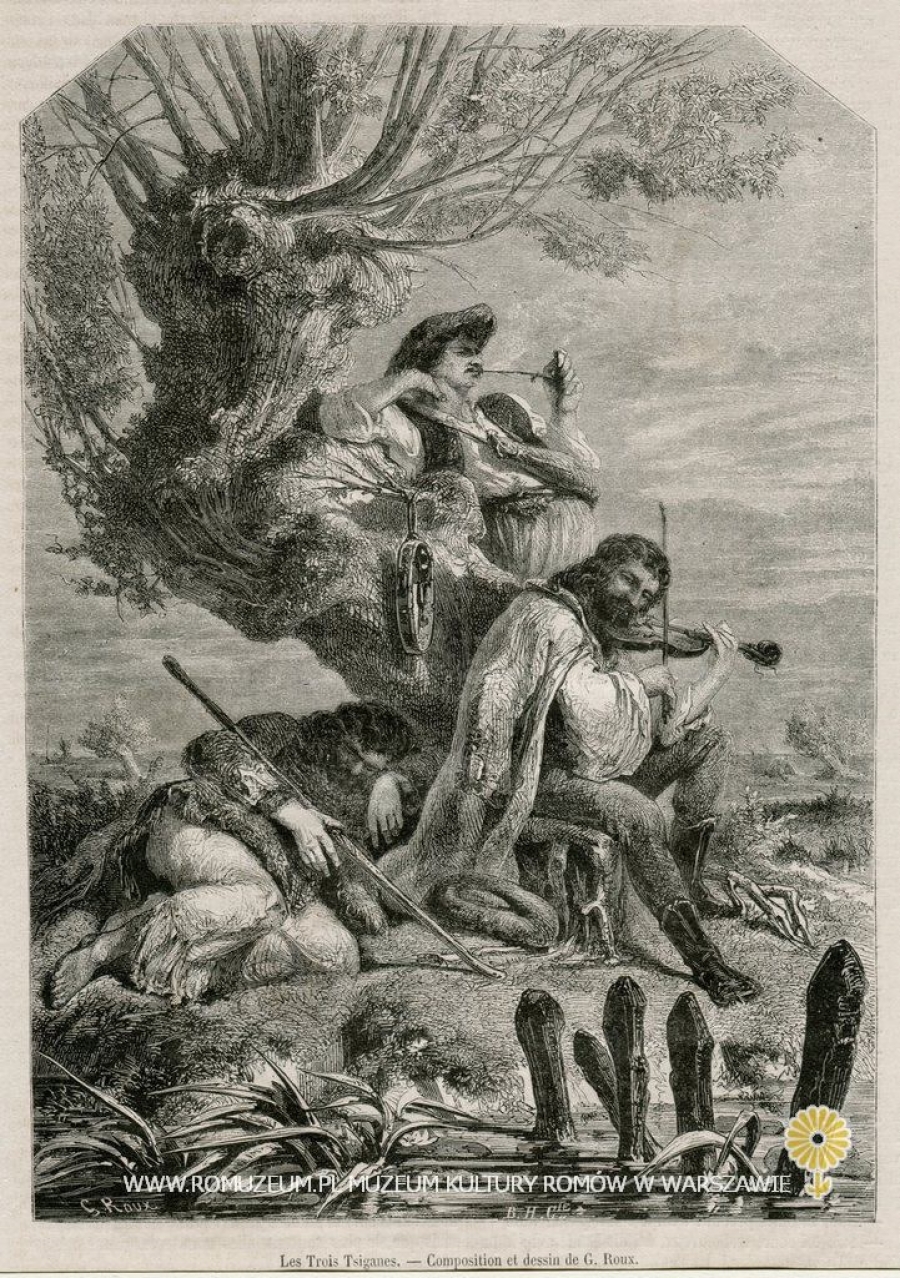 Les Trois Tsiganes [trzech Cyganów], Alexandre-Georges Roux (*1853 Ganges, Francja - †1929 Paryż), 14,5x20,5 cm, pojedyncza karta z francuskiego tygodnika ilustrowanego "Le Magasin Pittoresque" 1887