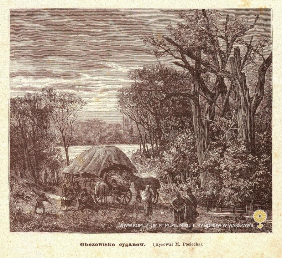 Obozowisko cyganów (sic!), Michał Pociecha (*1852, Prokocim - †1908, Kraków), okładka w: "Biesiada Literacka", Warszawa 15 (27) VIII 1880