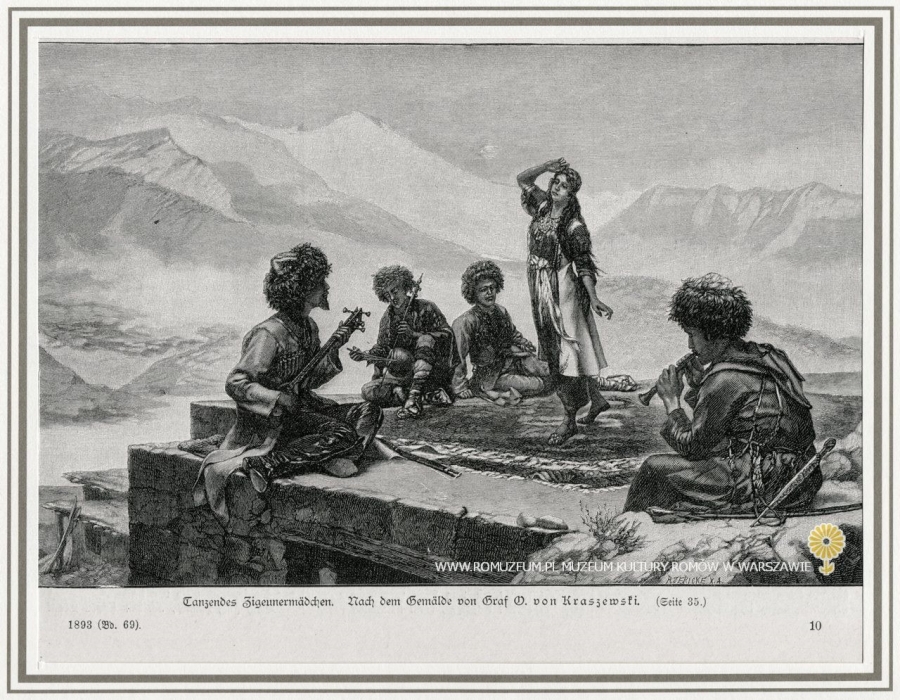 Tanzendes Zigeunermädchen [cygańska tancerka], na podstawie obrazu Graf D. von. Kraszewski, 14,5x23 cm, pojedyncza karta z niemieckiego tygodnika ilustrowanego "Deutsche Illustrirte Zeitung", 1893