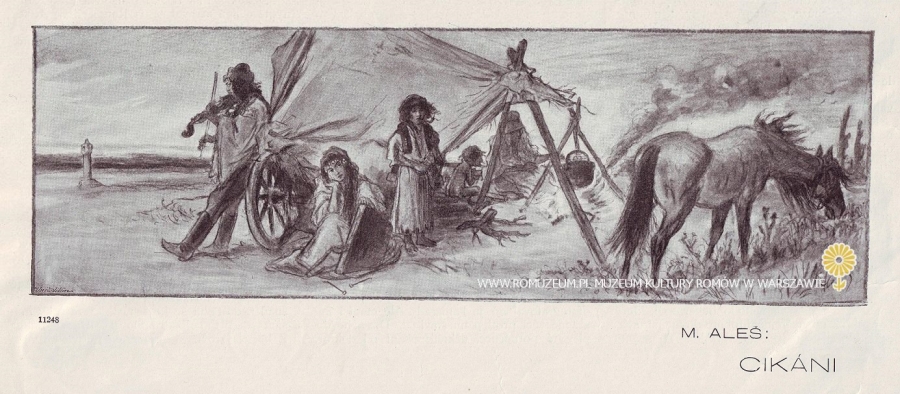 Cikáni, Mikoláš Aleš (*1852 Mirotice – †1913 Praha), grafika opublikowana w nieznanym periodyku w języku czeskim, circa 1910