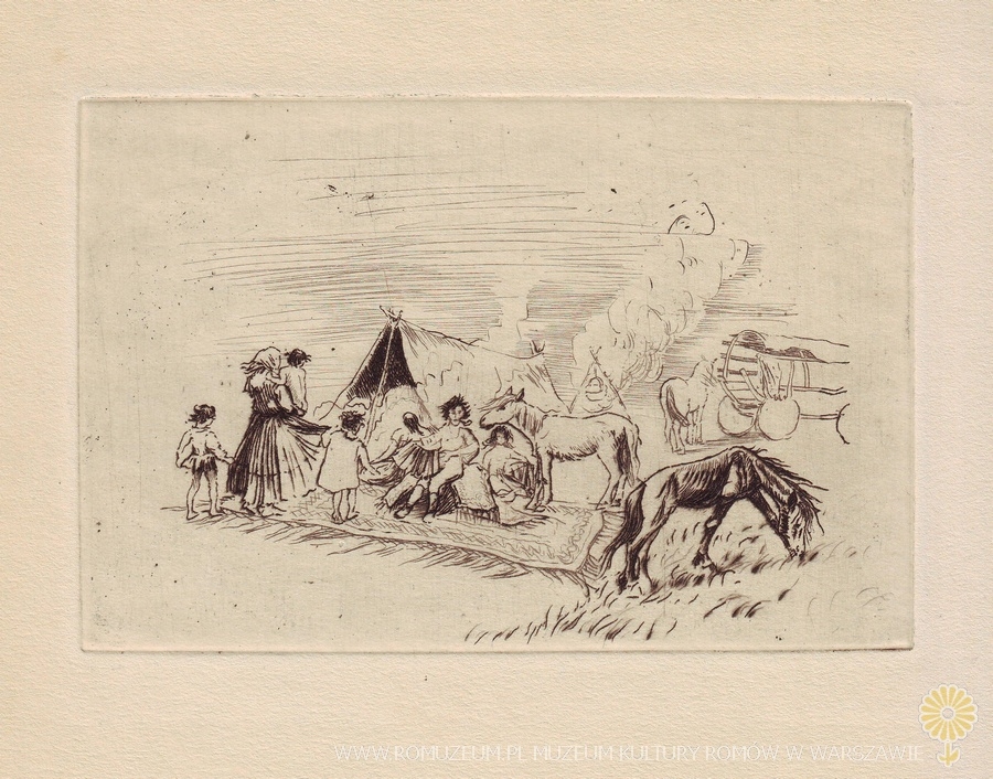 Cikáni, Ladislav J. Kaśpar, (*1915 Trawnik/Bośnia – †1995 Praha), akwaforta 22x15 cm, circa 1940
